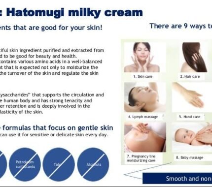 - Containing Hyaluronic acid, Wheatgrass (yokuinin extract), Centella asiatica extract, and Enzymes as ingredients to moisturize beautiful skin.