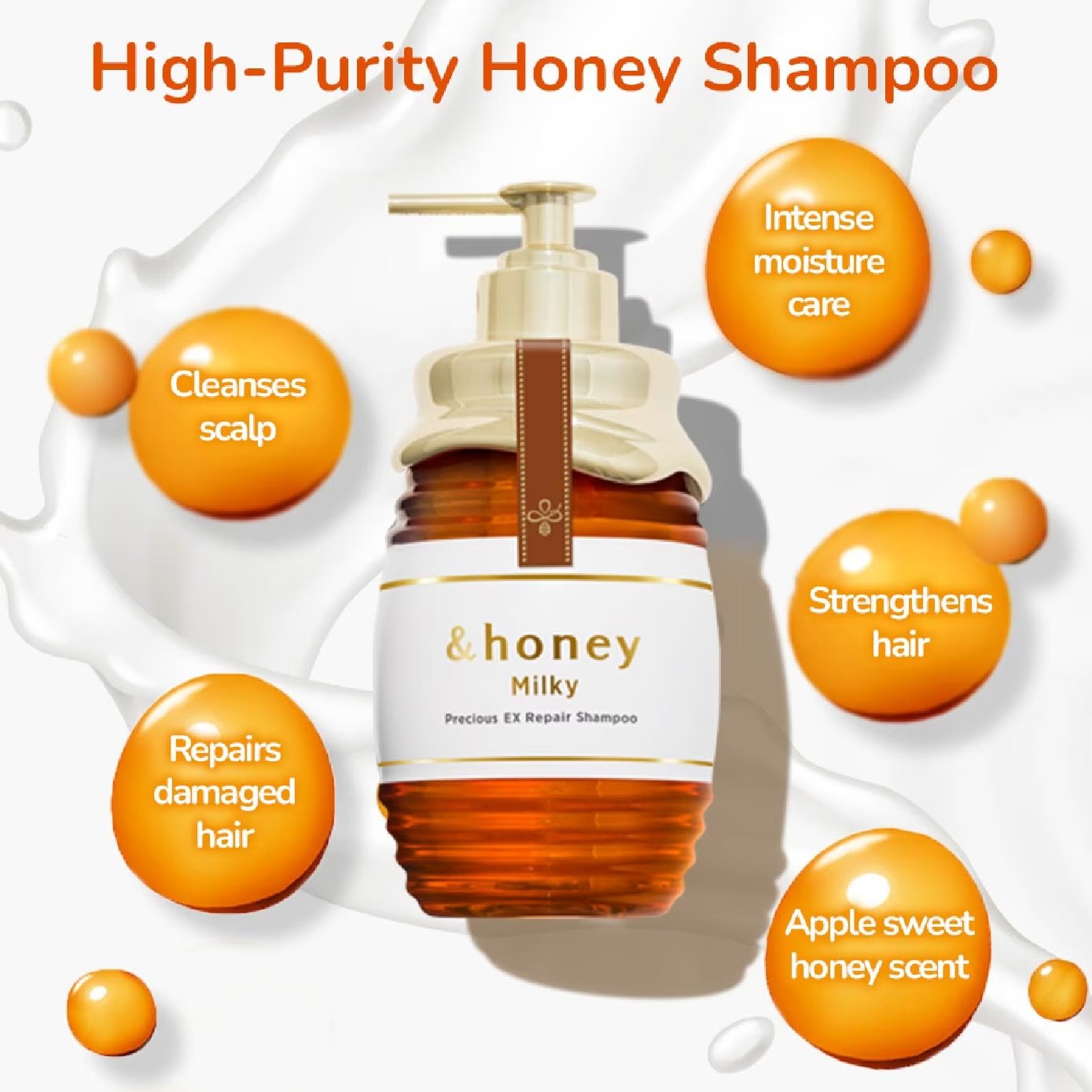 About This Item: Indulge your hair in deep repair and luxurious moisture with &honey Milky Precious EX Repair Shampoo. Formulated with a powerful blend of new-generation honey ingredients — Milk Honey, Keratin Honey, and raw honey — this shampoo penetrates from root to tip to restore strength, softness and shine. Its rich, creamy lather gently cleanses while delivering over 95 % moisturizing-and-honey-based ingredients for maximum nourishment. The sweet apple-honey fragrance enhances your sensory experience, leaving hair beautifully scented and touch-ably smooth.