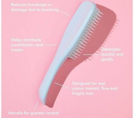 - Tangle Teezer Wet Detangler Sky Blue Cupid hairbrush can also be used on dry hair, to deliver smoothness and shine.